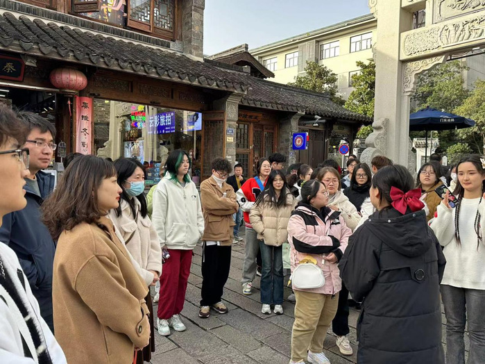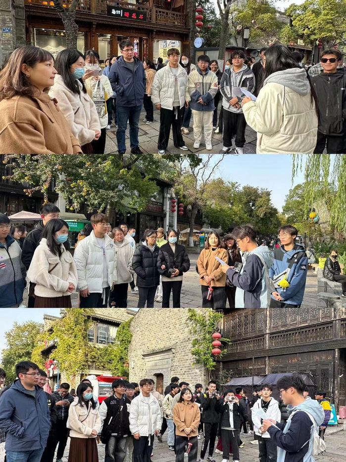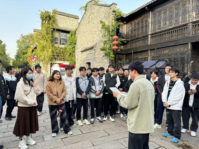 建筑是用石头写成的史书。走近一座老建筑,就像翻开一本生动鲜活的历史教科书。一椽一木、一榫一卯,无一不诉说着经年往事。11月16日下午建筑工程学院23级工程造价专业学生,在班主任吴炳延、赵美杰和辅导员江蕾老师的带领下来到了秦淮区老门东,开展以“感受中华文化之美 弘扬古建工匠精神”为主题的思政课,结合专业实际,在与一砖一瓦的邂逅中,感受古建筑之美,体会匠心营造。