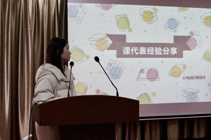 为营造良好的学风,发挥课代表重要作用,2023年12月18日12:15,商学院在东校区图书馆5楼报告厅举办优秀课代表经验分享沙龙。活动由学生干部谢宇主持,商学院党总支副书记丁晓华、辅导员王庆宁及2023级全体课代表参加活动。