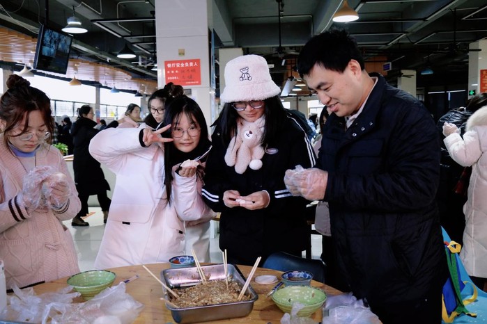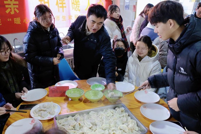活动现场,老师们和同学们一起包饺子、话家常,鼓励同学们珍惜大学美好时光,关心慰问少数民族同学的生活和学习状况,嘱咐学生干部要做实事、长才干,带领广大同学共同进步。