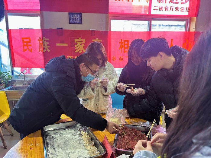 民族一家亲,相伴暖人心。本次学院师生冬至日欢聚包饺子活动,不仅是一次热闹、暖心的团圆饭,更是一堂生动的劳动教育实践课、民族团结进步教育课。同学们在学习包饺子的过程中,感受到“劳动最光荣”的意义、团结一体的力量和中国传统民俗节日的魅力。同时,少数民族学生也在这相亲相爱、团结和睦的氛围中感受到家一般的温暖,缓解思乡之情。