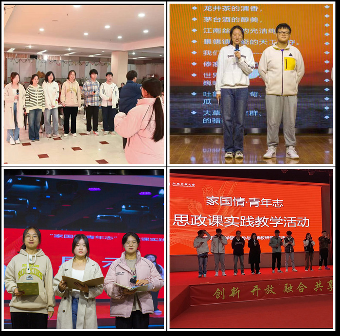 2023/12/01家国情·青年志——马克思主义学院开展实践教学暨公开课活动(二)为进一步创新思政课实践教学模式,切实提高课堂实效,马克思主义学院形势与政策教研部于11月分别在“思想道德与法治”、“形势与政策”的课堂上开展了主题为“家国情·青年志”思政课实践教学暨公开课活动。课程主讲教师为形势与政策教研部负责人董迅石、青年教师韦庆玲。商学院、环境生态学院、信息工程学院共6个班级近200... -