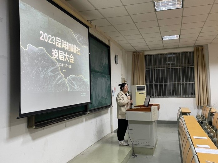 2023/11/21商学院召开2023年度品味咖啡社换届大会2023年11月17日18:00,商学院于东校区教学楼1-1阶梯教室召开2023年度品味咖啡社换届大会。大会由社长童亦辰主持,社团指导老师何冬梅及全体社团成员参加。指导老师何冬梅就咖啡社的性质、工作内容等展开阐述,对本届社团负责人的工作给予认可。她希望大家在做好本职工作的基础上,能持续保持对于咖啡的兴趣,热爱咖啡社这个...