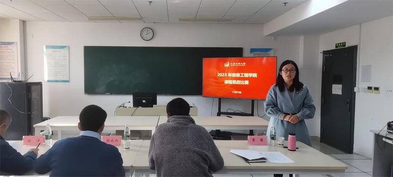 2023/11/21信息工程学院举办2023年度课程思政教学比赛信息工程学院始终将立德树人作为学院工作的根本任务,将思想政治工作贯穿于教育教学全过程。为全面提升教师课程思政教学能力,高质量推进课堂教学改革,更好地备战学校2023年度课程思政说课比赛,11月15日上午,信息工程学院于应天校区教学楼1006实训室举行2023年信息工程学院课程思政比赛,学院共有15名教师踊跃报名参加。... -