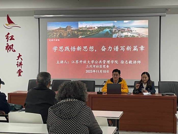 2023/11/16厚植联动互促向心力 让党建不断发“力”——公共管理学院赴三汊河社区开展公益讲座为深入学习贯彻习近平新时代中国特色社会主义思想,用党的创新理论统一思想、统一意志、统一行动,充分发挥党建在社区工作的引领作用,11月10日下午,公共管理学院教师徐志毅在鼓楼三汊河社区开展以学习习近平总书记在江苏考察时重要讲话精神和《论党的自我革命》为主题的公益讲座,社区党委班子成员、党员和部分居民参加活... -