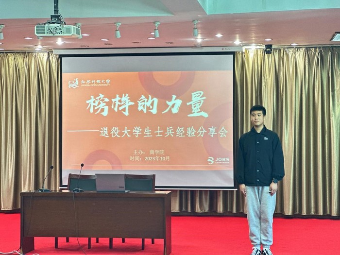 2023/10/28榜样的力量——商学院举办退役大学生士兵经验分享会为体现退役士兵“退伍不褪色”的优良作风,帮助同学们了解军队文职报考政策,以及如何科学合理的规划未来的学业与职业道路,2023年10月26日上午10点,商学院在东校区图书馆5楼报告厅举办退役大学生士兵经验分享会,分享人为中共党员、退役士兵、曾服役于陆军航空兵学院、服役期间长期负责军队文员招录工作、现商学院2021级... -