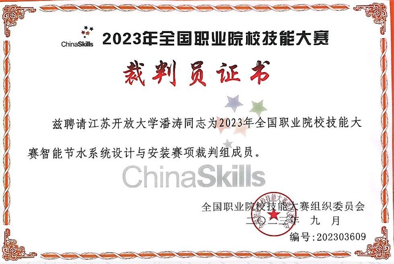 2023/10/08环境生态学院潘涛老师受邀担任2023年全国职业院校技能大赛裁判由教育部等国家部委主办,山西省教育厅、山西省水利厅等单位联合承办的2023年全国职业院校技能大赛高职组“智能节水系统设计与安装”赛项于9月25-27日在山西水利职业技术学院运城校区举办。我院潘涛老师被全国职业院校技能大赛执委会聘任为本次赛项裁判,参加了裁判的培训、执裁、评分等相关工作。本次大赛是节水技术赛项第... -