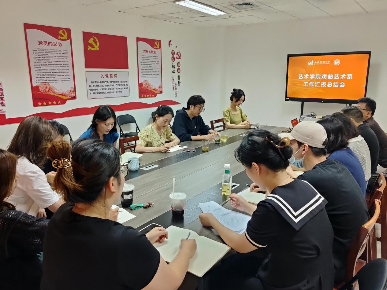 2023/07/05艺术学院戏曲艺术系召开2023春学期工作汇报总结会7月4日上午10时30分,艺术学院戏曲艺术系全体教师于定淮门校区612室召开了2023年春学期系部工 -