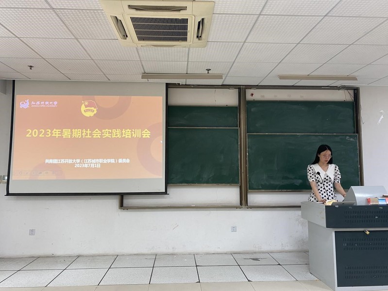 2023/07/02我校开展2023年暑期社会实践培训会为进一步开展2023年暑期社会实践活动,7月1日上午,团委于应天校区教学楼101教室开展社会实践培训 -