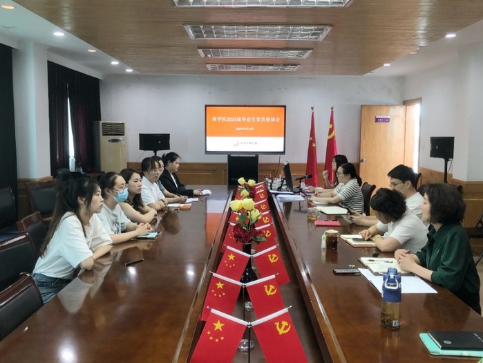 2023/06/20商学院召开2023届毕业生党员座谈会为深入了解学生需求,提高学院党建工作成效,全面构建学院学生党员人才培养体系,2023年6月16日下午