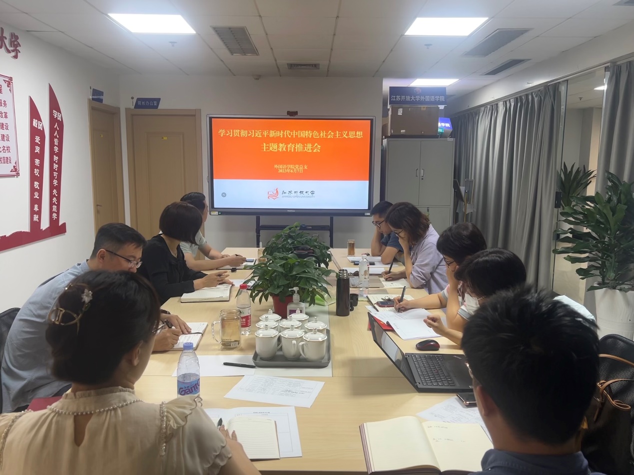 2023/06/08【主题教育进行时】学思践悟强根基 奋楫笃行谱新篇——处级领导干部读书班第八组扎实开展主题教育为丰富理论学习形式,推动主题教育高质量开展,江苏开放大学学习贯彻习近平新时代中国特色社会主义思想主题 -