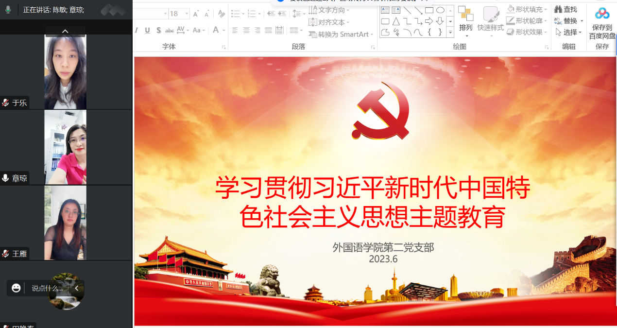 2023/06/07【主题教育进行时】外国语学院第二党支部开展主题教育专题党课学习研讨会2023年6月6日,外国语学院第二党支部全体党员在线上开展主题教育专题党课学习研讨会。此次会议的主要 -