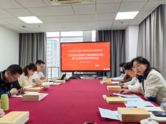 2023/06/06【主题教育进行时】 建筑工程学院第二党支部开展主题教育专题党课研讨为深入学习贯彻习近平新时代中国特色社会主义思想,加快推进高水平开放大学建设步伐,6月5日下午14点, -