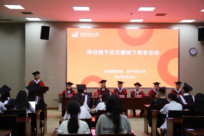 2023/05/31且看 且听 且研——公共管理学院赴吴中开放大学举办学士学位授予仪式暨线下教学活动立德树人守初心,铸魂育人担使命。为推动学习贯彻习近平新时代中国特色社会主义思想主题教育走深走实,加强 -