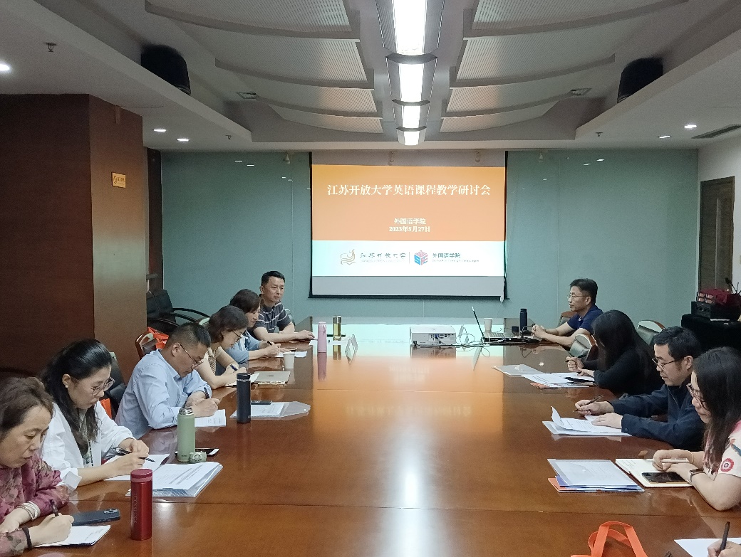 2023/05/30外国语学院召开办学系统英语课程教学研讨会5月27日下午,外国语学院于定淮门校区二楼第三会议室举办了江苏开放大学英语课程教学研讨会。会议由外国