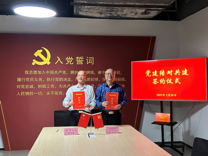 2023/05/29执党建引领之笔 谱奋斗韶华之曲 ——马克思主义学院第一党支部与“韶华工坊”党支部签订党建共建协议为推动学习贯彻习近平新时代中国特色社会主义思想走深走实,扎实推进政校企合作共建,5月26日下午,马克 -