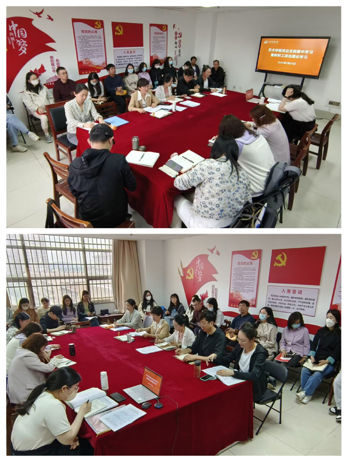 2023/05/25艺术学院党总支部召开主题教育学习研讨暨教职工政治理论学习会议5月24日上午,艺术学院党总支部在定淮门校区612室召开主题教育学习研讨暨教职工政治理论学习会议。本 -