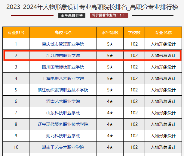 2023/05/25艺术学院高职专业位列高职专业排行榜全国第2名、第5名日前,“金平果”第三次发布高职专业群综合竞争力评价数据,第四次发布高职专业排行榜,评价对象包括全国1 -
