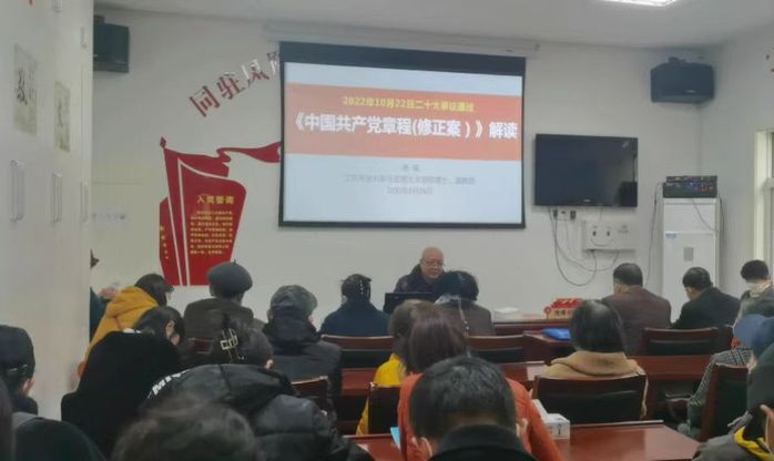 2023/05/04学习新党章 迈上新征程——马克思主义学院第一党支部送党课入社区应鼓楼区江东街道白云园社区党委邀请,马克思主义学院第一党支部书记杨斌博士为社区50余名党员讲授学习新