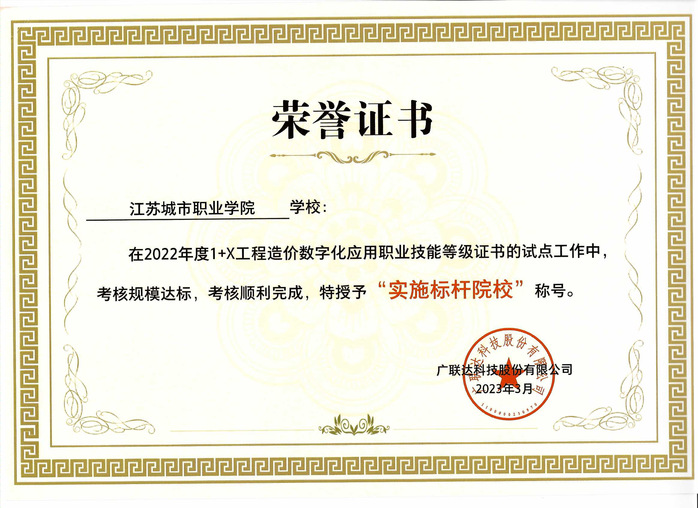 2023/05/04建筑工程学院组织报考的 “1+X工程造价数字化应用证书”获2022年度实施标杆院校为贯彻落实《国家职业教育改革实施方案》和《教育部等四部门关于在院校开展“学历证书+若干职业技能等级证 -
