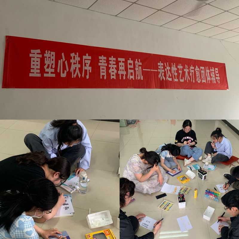 2023/04/23重塑心秩序 青春再启航——表达性艺术疗愈团体辅导顺利开班心理健康实践活动是我校心理健康教育的重要内容,我校坚持聚焦学生身心和谐发展,育心与育德相统一,积极贯 -