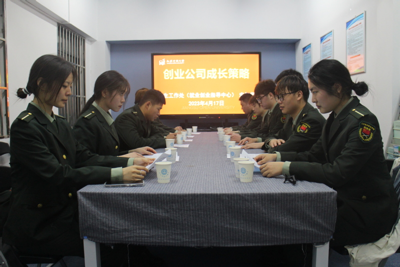 2023/04/19戎耀青春 创启未来 ——我校举办退役学生军创沙龙昔日军营加钢淬火,今朝创业勇立潮头。4月17日晚,我校学生工作处在定淮门东校区大学生就业创业指导站举 -