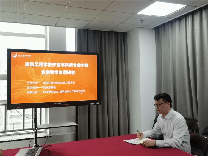 2023/04/18建筑工程学院召开新专业申报宣讲和学生座谈会为积极推进我院专业建设,优化学科专业结构,促进专业集群发展,4月14日,建筑工程学院建筑设备工程系于