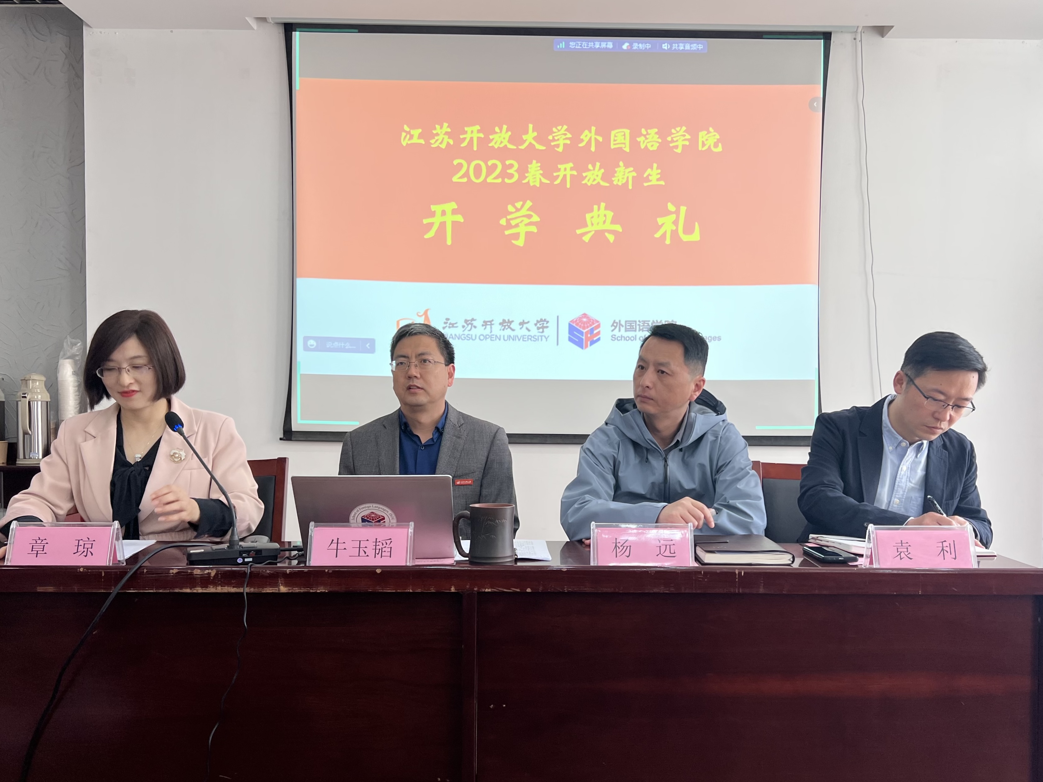 2023/04/17人间四月天,奋斗正当时——外国语学院召开2023春开放新生开学典礼一树一树花开,燕在梁间呢喃,时值人间最美四月天。4月16日上午,江苏开放大学外国语学院2023春开放 -