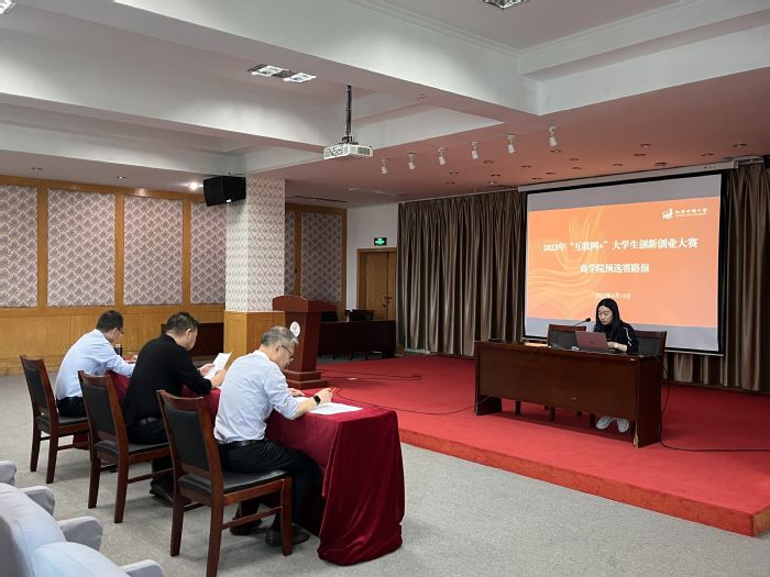 2023/04/14商学院举办2023年“互联网+”大学生创新创业大赛学院预选赛为深入宣传贯彻党的二十大精神,着力提升创新创业人才培养质量,2023年4月13日,商学院在定淮门东校