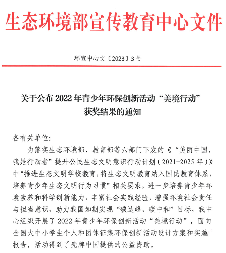 2023/03/29喜报:马克思主义学院环保思政实践教学项目获2022年全国青少年环保创新活动“美境行动”优秀实施报告二等奖为落实生态环境部、教育部等六部门下发的《“美丽中国,我是行动者”提升公民生态文明意识行动计划(202 -