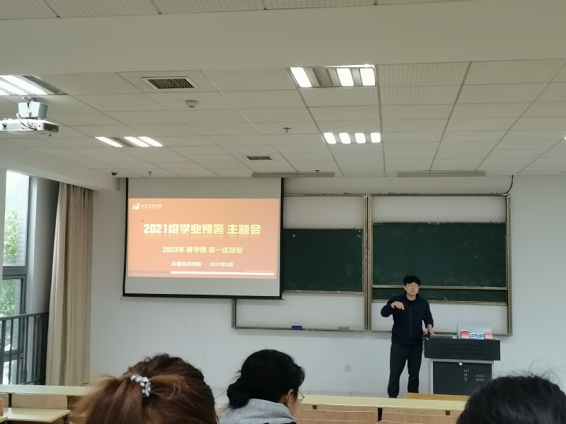 2023/03/28环境生态学院召开21级学业预警与精准帮扶年级会为持续推进我院学风建设,强化学生学习过程的指导,3月20日中午,环境生态学院在应天校区教学楼201教 -