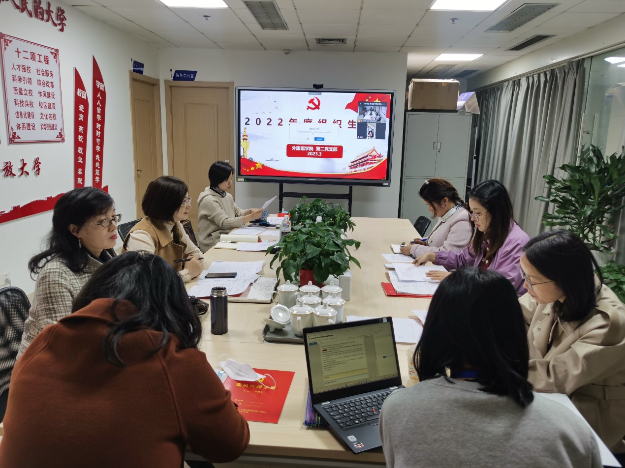 2023/03/17外国语学院第二党支部召开2022年度组织生活会和民主评议党员大会根据上级党组织要求,外国语学院第二党支部于3月15日下午在学院办公室召开组织生活会和民主评议党员大会 -