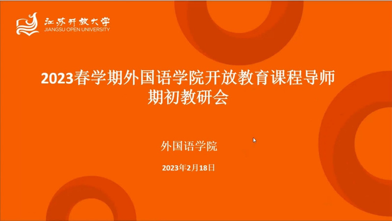 2023/02/20外国语学院召开2023春学期开放教育课程导师期初教研会为落实学校开放教育教学工作新要求,总结2022秋学期开放教学工作,持续提升开放教学质量,帮助课程导师 -