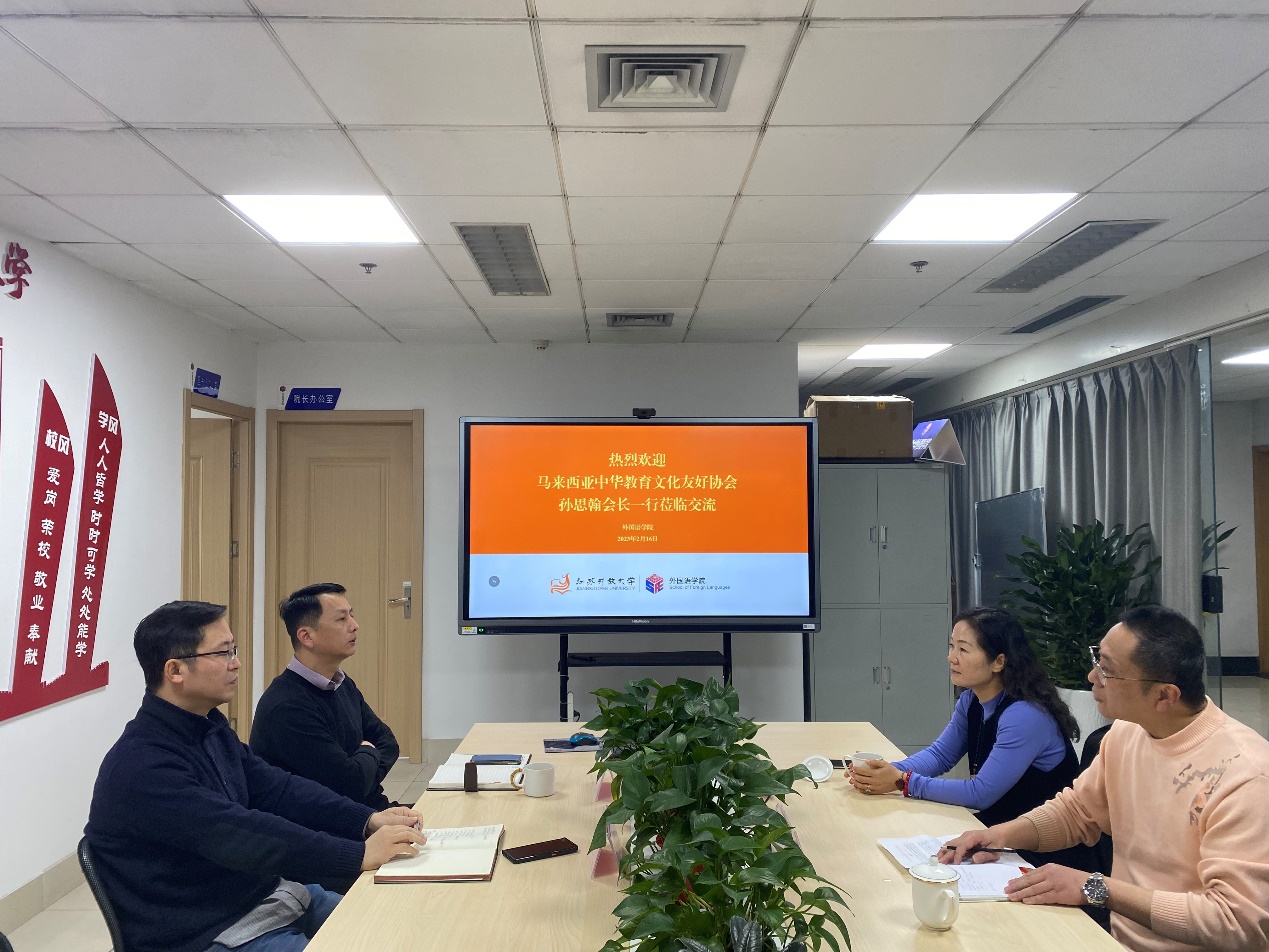 2023/02/16马来西亚中华教育文化友好协会赴外国语学院交流座谈2月16日上午,马来西亚中华教育文化友好协会会长孙思翰、秘书长葛延军一行来到外国语学院进行交流,外国 -