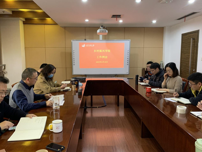 2023/02/17乡村振兴学院召开新学期工作会议为落实学校有关精神,扎实推进新学期各项工作,2月16日下午,乡村振兴学院召开工作会议,全体教职工参加 -