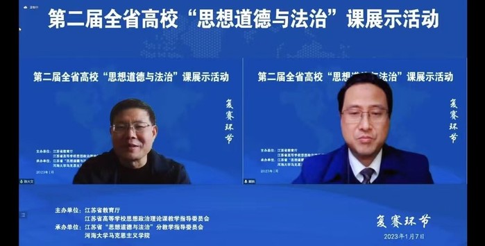 2023/01/11马克思主义学院思政教研部举行教学展示观摩暨集体备课交流研讨活动1月7日上午,由省教育厅主办的第二届全省高校“思想道德与法治”课展示活动(复赛)在河海大学举办,本次 -