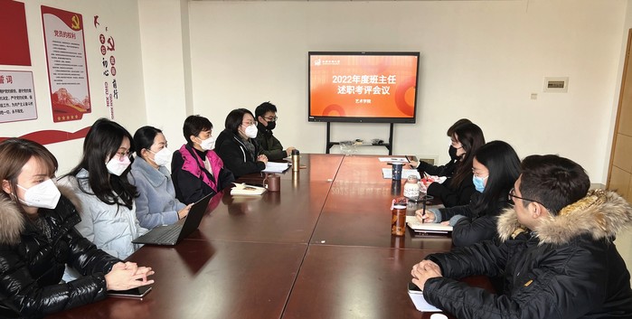 2023/01/06艺术学院举行2022年度班主任述职考评会议为进一步加强班主任队伍建设,搭建班主任班级管理经验交流的平台,1月6日,艺术学院在定淮门校区612会 -