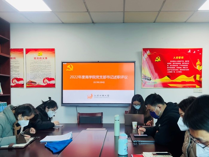 2023/01/05商学院组织开展2022年度党支部书记述职评议工作为扎实全面推进基层党支部建设,充分发挥基层党组织战斗堡垒作用,1月4日上午,商学院党总支部在综合楼3 -