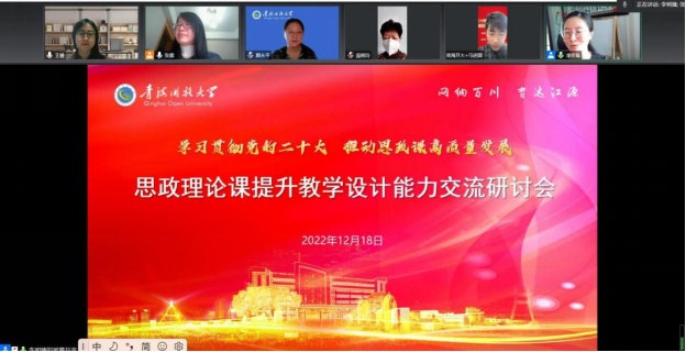 2022/12/30思政课教学的反思与建构——马克思主义学院教师受邀为青海开放大学作专题讲座12月18日,马克思主义学院党总支部书记张露博士,受邀参加青海开放大学“思政理论课提升教学设计能力与 -