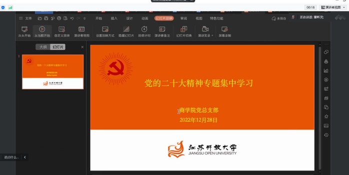 2022/12/30商学院党总支开展党的二十大精神专题集中学习为深入学习贯彻落实党的二十大精神,号召全体教职工凝聚奋进力量,担当时代使命,2022年12月28日下 -