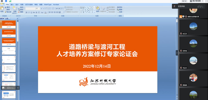 2022/12/15建筑工程学院召开道路桥梁与渡河工程专业人才培养方案修订专家论证会为进一步优化专业人才培养方案,全面提高人才培养质量,2022年12月14日,建筑工程学院通过腾讯会议