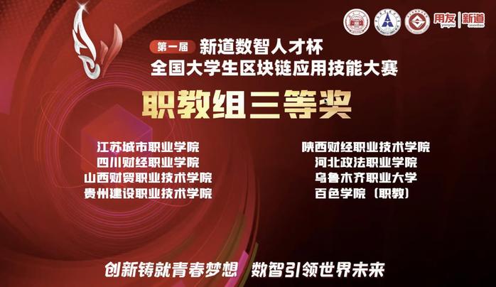 2022/12/07喜报:商学院在全国大学生区块链应用技能大赛中荣获职教组三等奖12月4日,第一届“新道数智人才杯”全国大学生区块链应用技能大赛圆满落幕。由商学院国际电子商务系教师