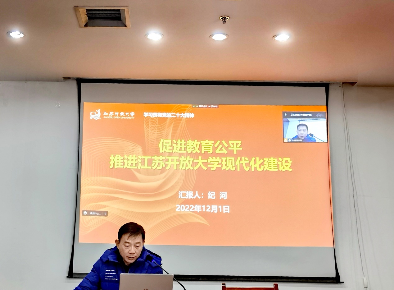 2022/12/02云端相见 联学共建——外国语学院邀请公共管理学院院长纪河教授作党的二十大精神宣讲“在加快建设高质量教育体系过程中,作为推进教育公平重要力量的开放大学有何不同于普通高等教育院校的特征
