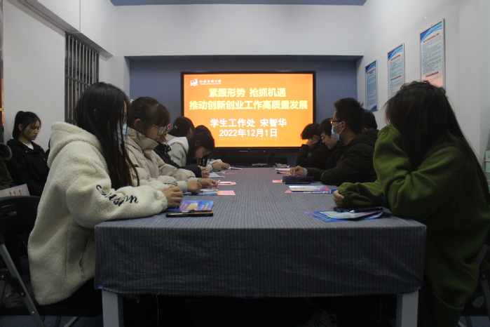 2022/12/02奋斗青春 创造未来——我校举办大学生“双创”讲座为增强“双创”动力,主动参与实践,12月1日晚,我校学生工作处和商学院在定淮门东校区大学生就业创业指 -