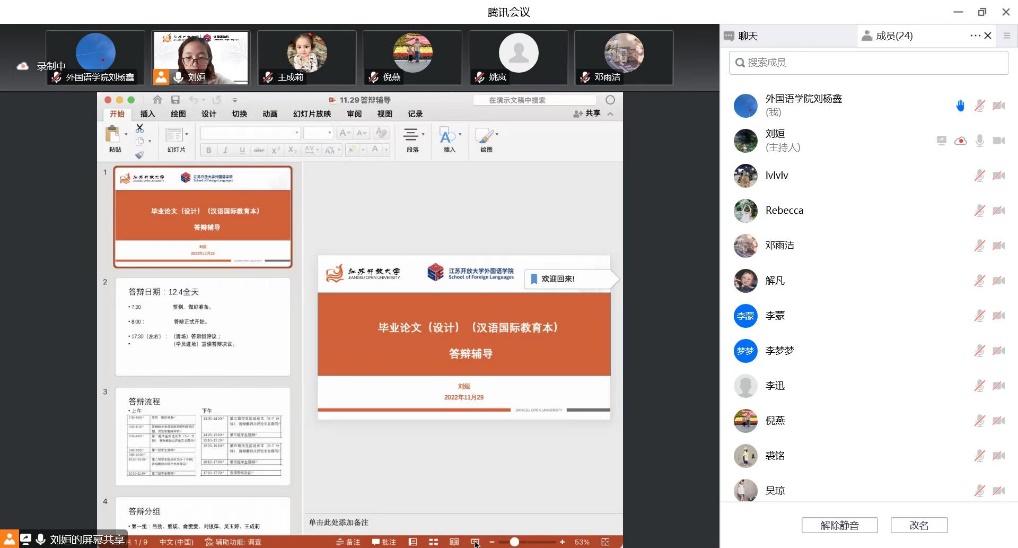 2022/11/30外国语学院开展汉语国际教育专业毕业论文答辩辅导为助力2022秋学期本科汉语国际教育专业学员顺利完成毕业论文答辩,外国语学院于11月29日晚召开毕业 -