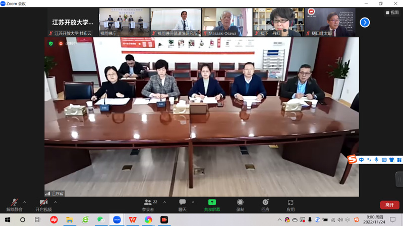 2022/11/30环境生态学院教师参加江苏省-福冈县结好30周年线上环保交流会为纪念江苏省与福冈县结好30周年,省外办、省生态环境厅协同福冈县环境部、福冈县国际局于11月24日举