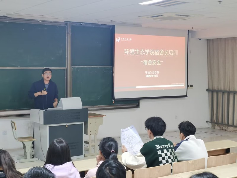 2022/11/25强化安全意识 共筑平安宿舍 ——环境生态学院召开宿舍长培训会为进一步强化宿舍安全意识,发挥宿舍长在学生安全工作中“兵头将尾”重要作用,提升宿舍长工作能力,着力打 -
