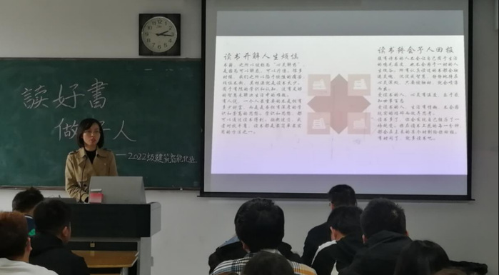 2022/11/25读好书,做好人 ——22建筑智能化工程技术班开展读书主题班会11月23日下午,22级建筑智能化工程技术班“读好书、做好人”主题班会在教学楼401教室举行,第二班 -