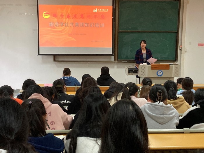 2022/11/22踔厉奋发 笃行不怠——我校新语学社开展共青团知识学习11月17日,学校理论社团新语学社在东校区阶梯教室1-1开展共青团知识学习。本次会议邀请了设计学院团 -