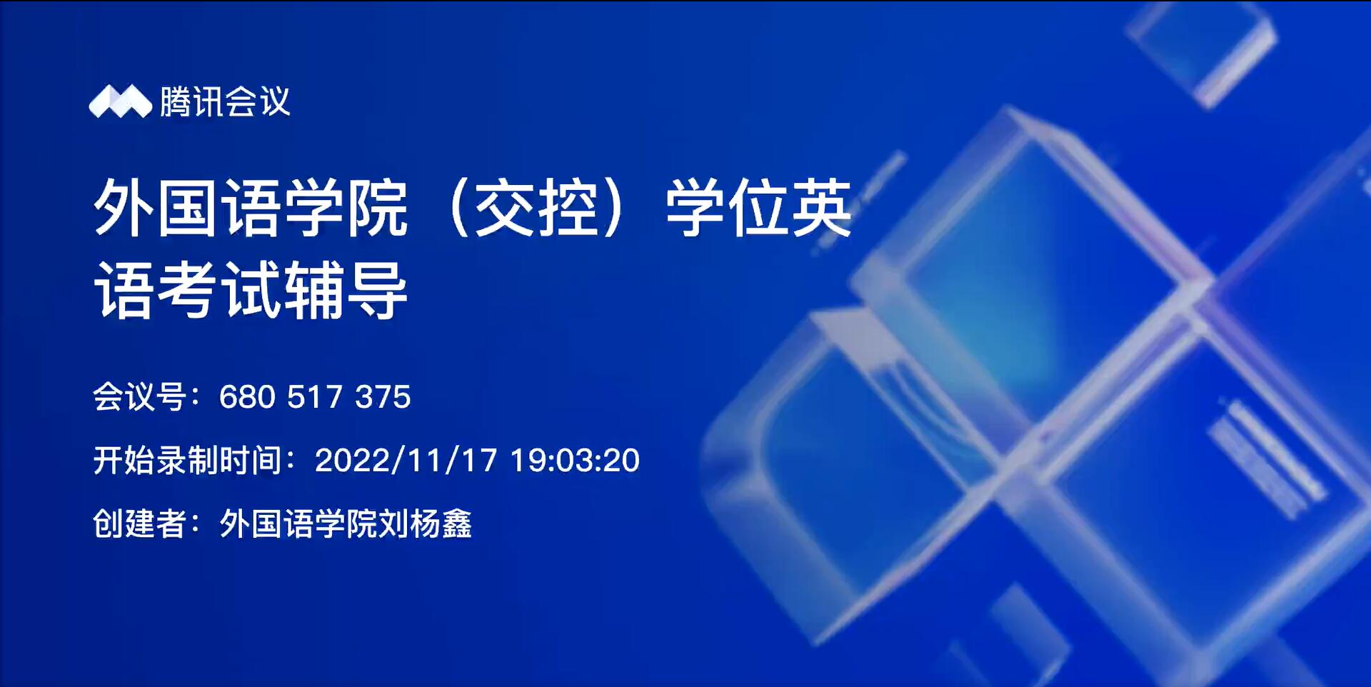 2022/11/18外国语学院为合作办学点学员开展英语学业水平测试辅导为进一步服务学员、助力学员取得学位,11月17日晚,外国语学院在线上腾迅会议为外国语学院(交控)合作 -
