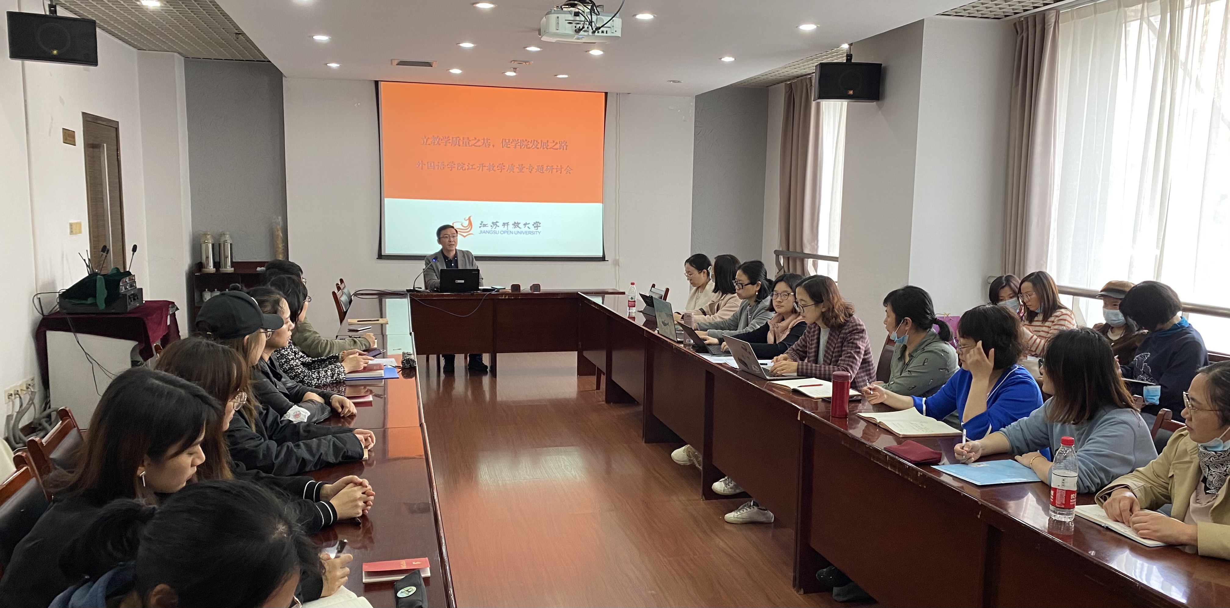 2022/11/14外国语学院召开教学质量专题研讨会11月10日下午,外国语学院在定淮门校区召开了开放教育教学质量专题研讨会,本次会议由学院副院长袁利主 -